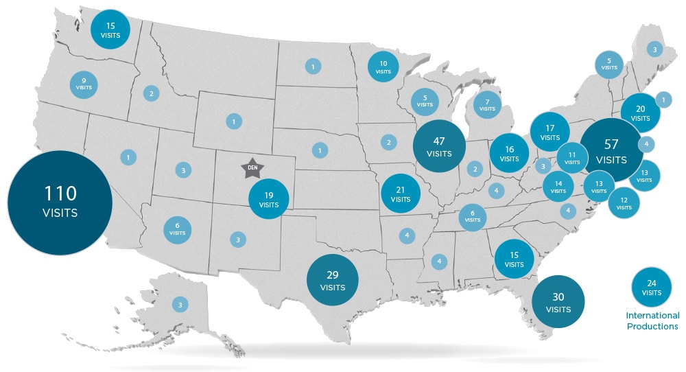 * Does not include community theatre productions or student productions.