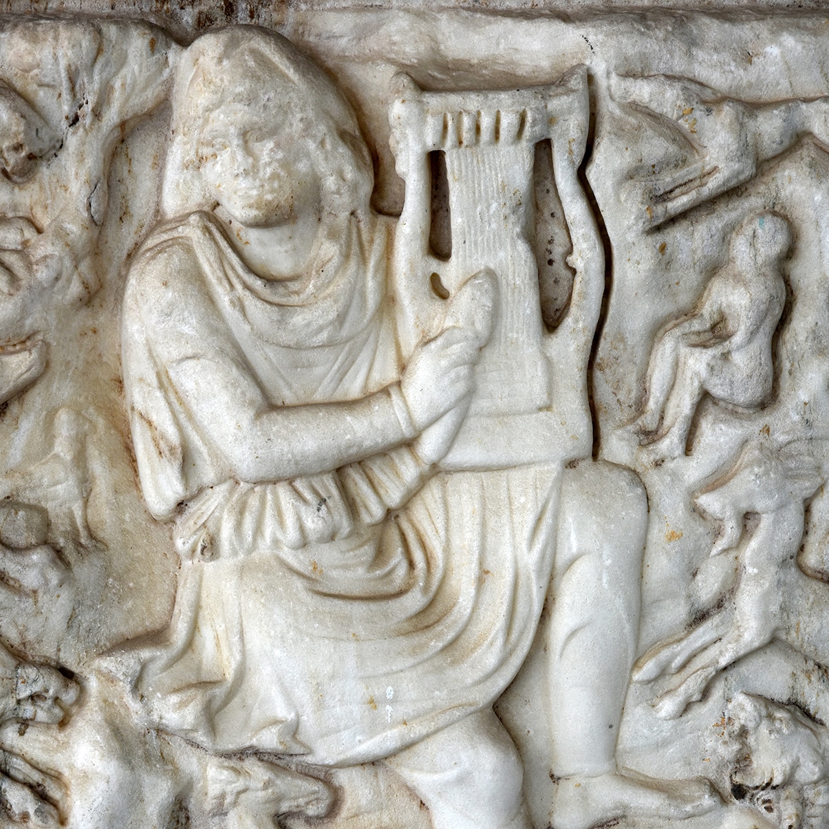 Son of the muse of epic poetry, engaged to marry Eurydice. With his golden voice and lyre, Orpheus charmed all living things, even rocks and stones.