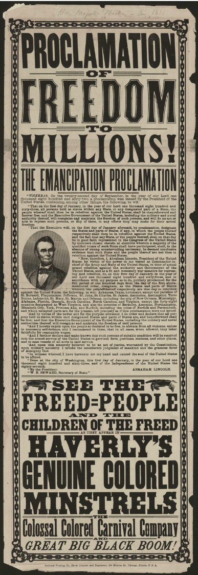 “The people of Texas are informed that, in accordance with a proclamation from the Executive of the United States, all slaves are free. This involves an absolute equality of personal rights and rights of property, between former masters and slaves and the connection heretofore existing between them, becomes that between employer and hired labor. The Freedmen are advised to remain at their present homes and work for wages. They are informed that they will not be allowed to collect at military posts; and they will not be supported in idleness either there or elsewhere. “